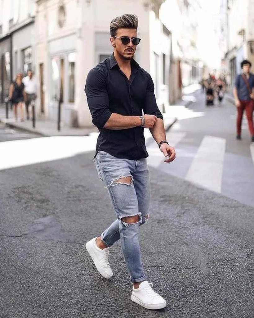 - Поєднуй джинси з будь-чим. Вони, мабуть, – найбільш універсальний варіант штанів. Тож можеш сміливо носити улюблені броги, кеди, кросівки та дезерти з джинсами без жодних сумнівів.