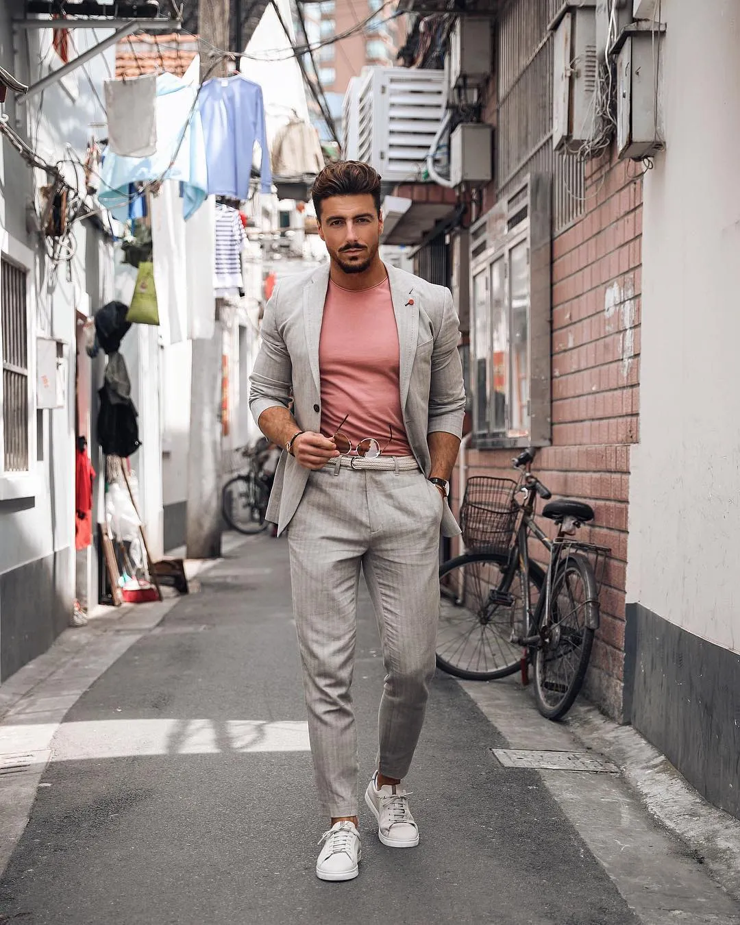 - Костюм має ідеально на тобі сидіти, а не висіти. Також можеш звернути увагу на не надто класичні моделі, які можна спокійно поєднувати з кросівками, аби ти не лише стильно виглядав, а й почувався комфортно.