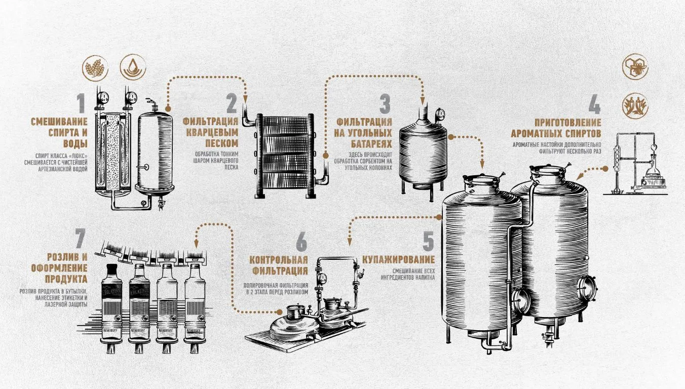 Спрощена схема технологічного процесу виробництва горілки / Фото Nemiroff