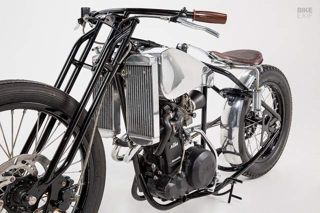 Попри атмосферу повернення KTM, потрібно було мати справу з одним абсолютно сучасним компонентом: радіатором. Але оскільки нова ідея проєкту полягала в тому, щоб вставити двигун з водяним охолодженням у вінтажний бак, Еді вирішив скористатися цим. Тому він придбав нову пару алюмінієвих радіаторів і з гордістю встановив їх на передній частині мотоцикла.
