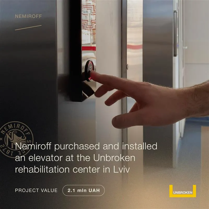 Звернімо увагу, що закупка ліфта для Центру НЕЗЛАМНІ – частина благодійного проєкту Nemiroff. З лютого 2022 року компанія також допомагає мобілізованим співробітникам, фінансує придбання для них озброєння, амуніції та транспорту. На це вже витратили близько трьох мільйонів гривень.