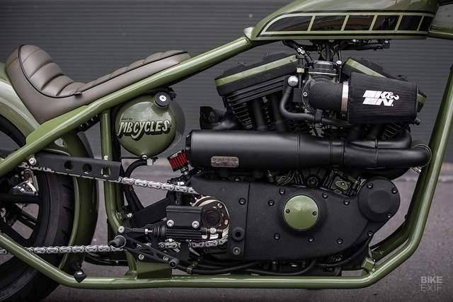 Мотор залишився, але попередньо витягнули та покрили свіжим чорним шаром фарби. Мартін поставив його назад з карбюратором Keihin CV і фільтром K & N, однокамерним запалюванням Dyna D та котушками від S & S Cycle. Потім він виготовив нові випускні колектори та встановив глушник Dr. Jekill & Mr Hyde, який має клапан з електронним управлінням для зміни гучності.