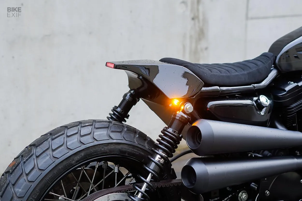Обновленный Harley получил название Umbra, что означает "тень". В основу взяли байк XL883 Hugger 1995 года выпуска. Это менее известный вариант Sportster, который позже стал моделью "Low". Компактная эргономика обусловлена другой формой сиденья, амортизаторами и установкой руля.