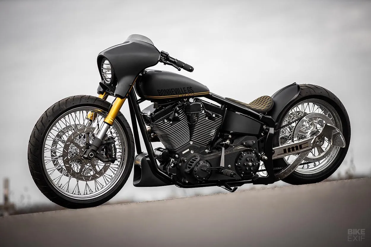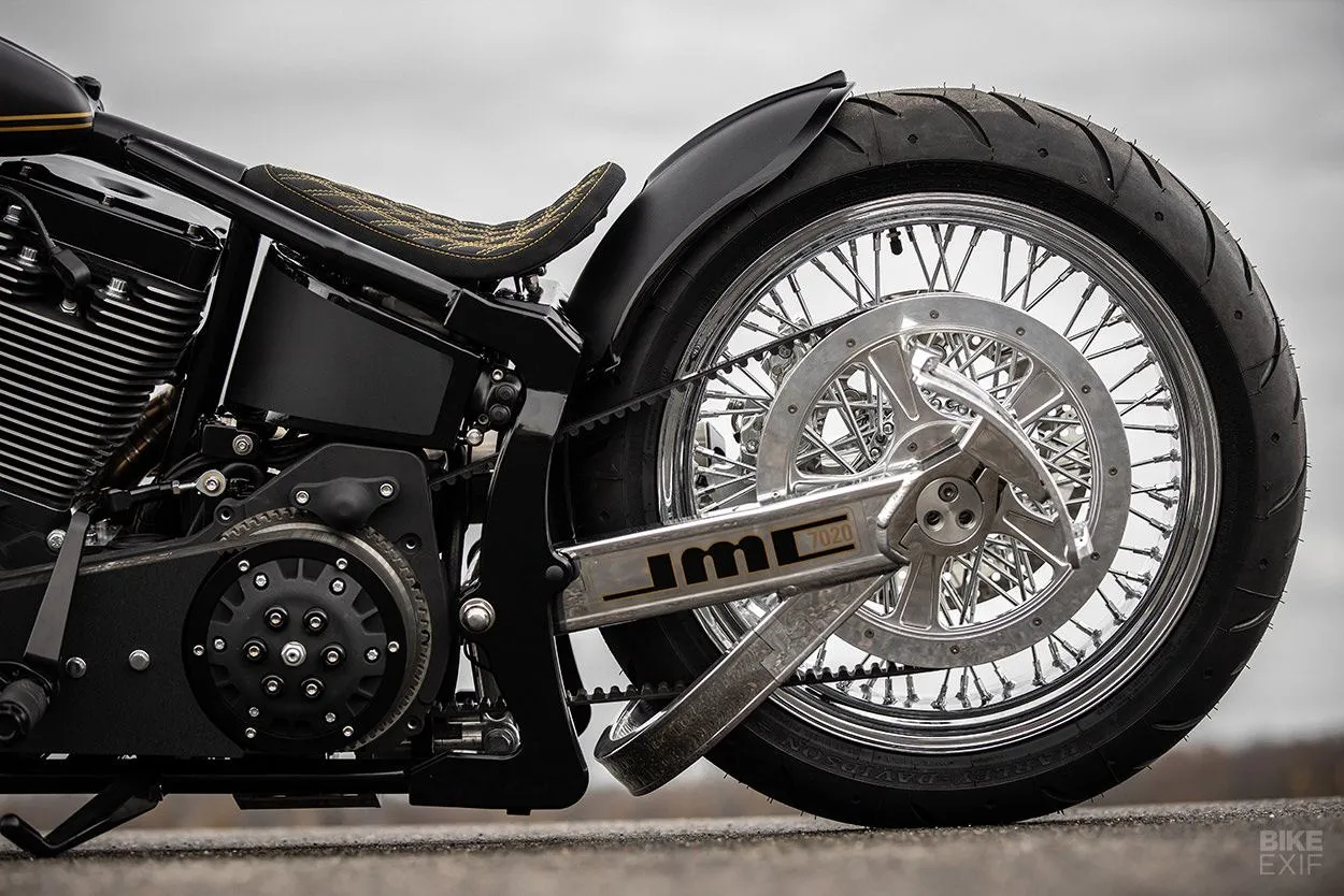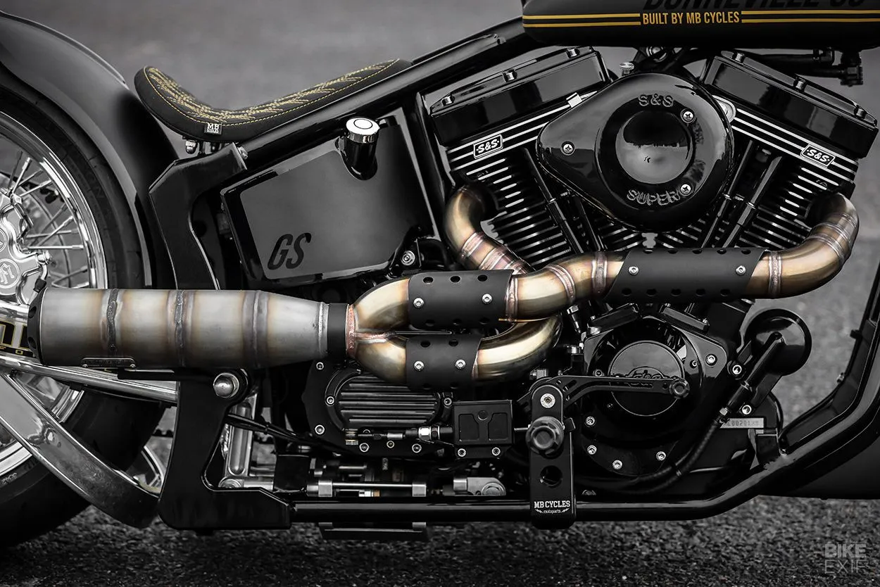 Двигатель 113ci S&S Evo-type, который сочетается с карбюратором Super E, выдает около 100 лошадиных сил. Краткий выхлоп – модифицированный агрегат, созданный по проекту Мартина Беккера австрийским производителем BSL, с умной системой управления звуком от нидерландской компании Jekill & Hyde (одним нажатием на кнопку он может переключаться с "тихого" на "громкий").