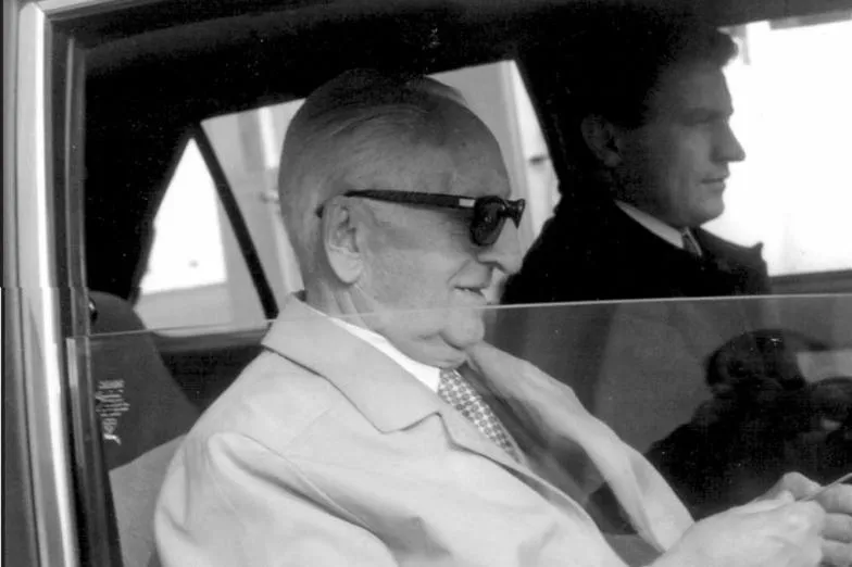 Энцо Феррари вместе с личным водителем в салоне Peugeot 404 / Фото wikimedia