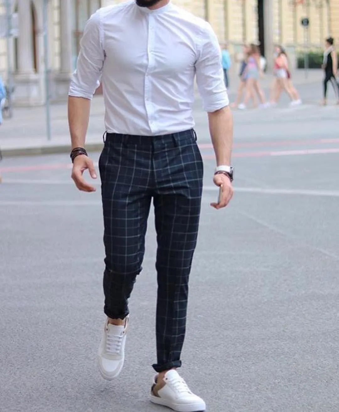 - Чого не можна носити: масивний низ у чоловіків з фігурою-прямокутником – зло. Намагайся трішки розширити верх, а низ зробити візуально вужчим.